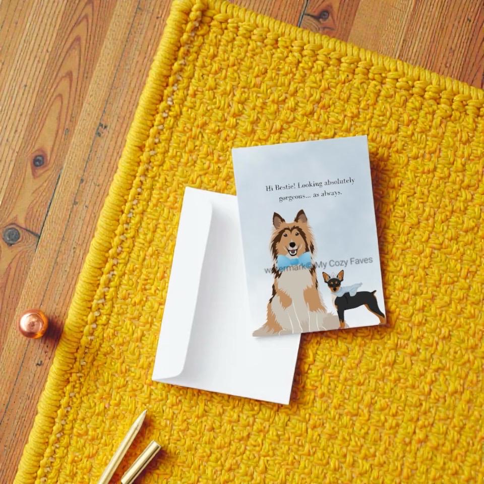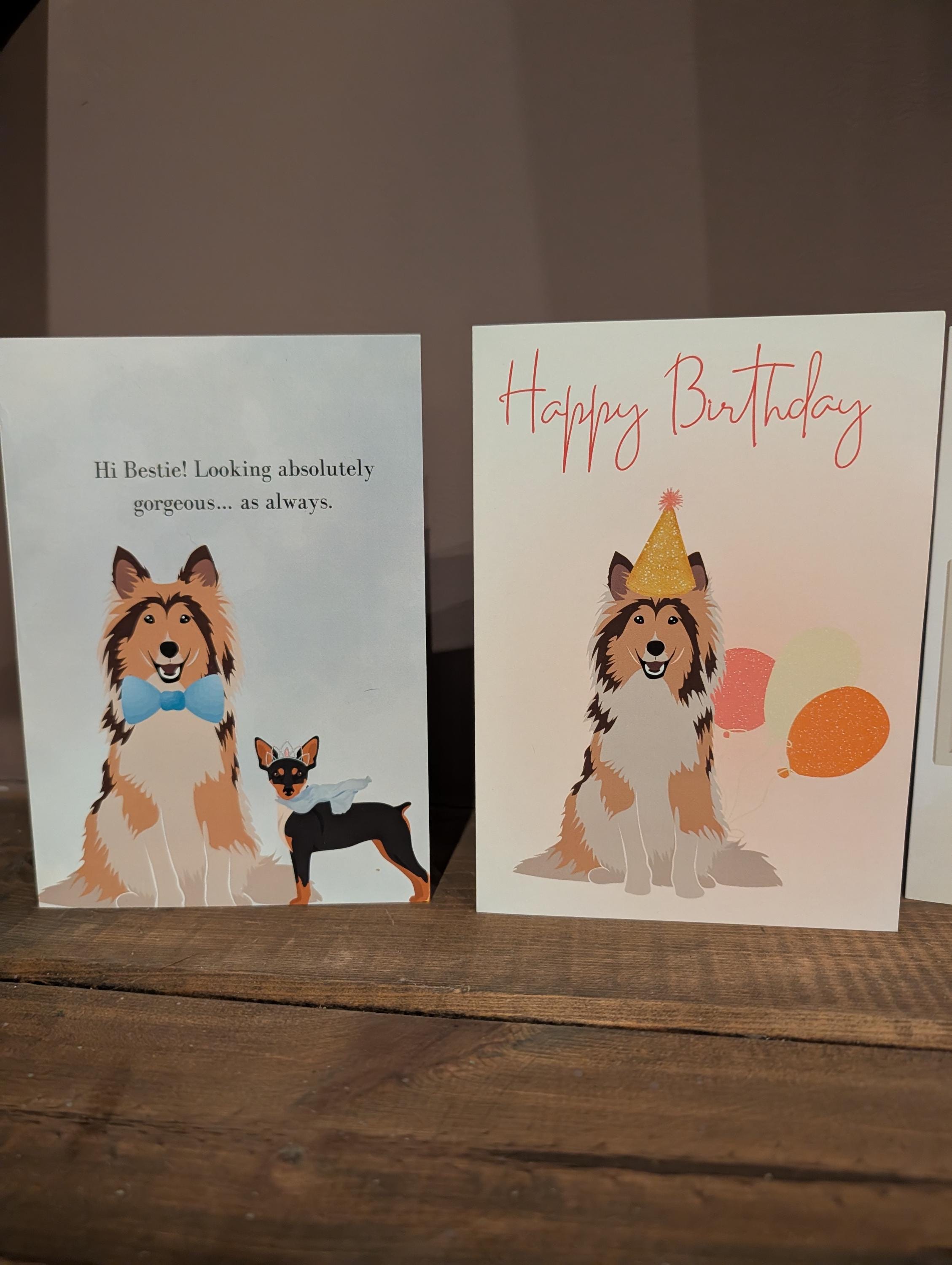 I love all the cards with the dog! I especially love them more knowing that they are created based on the artists dog. Such pretty, fun cards. You can't help but to smile when you see it!