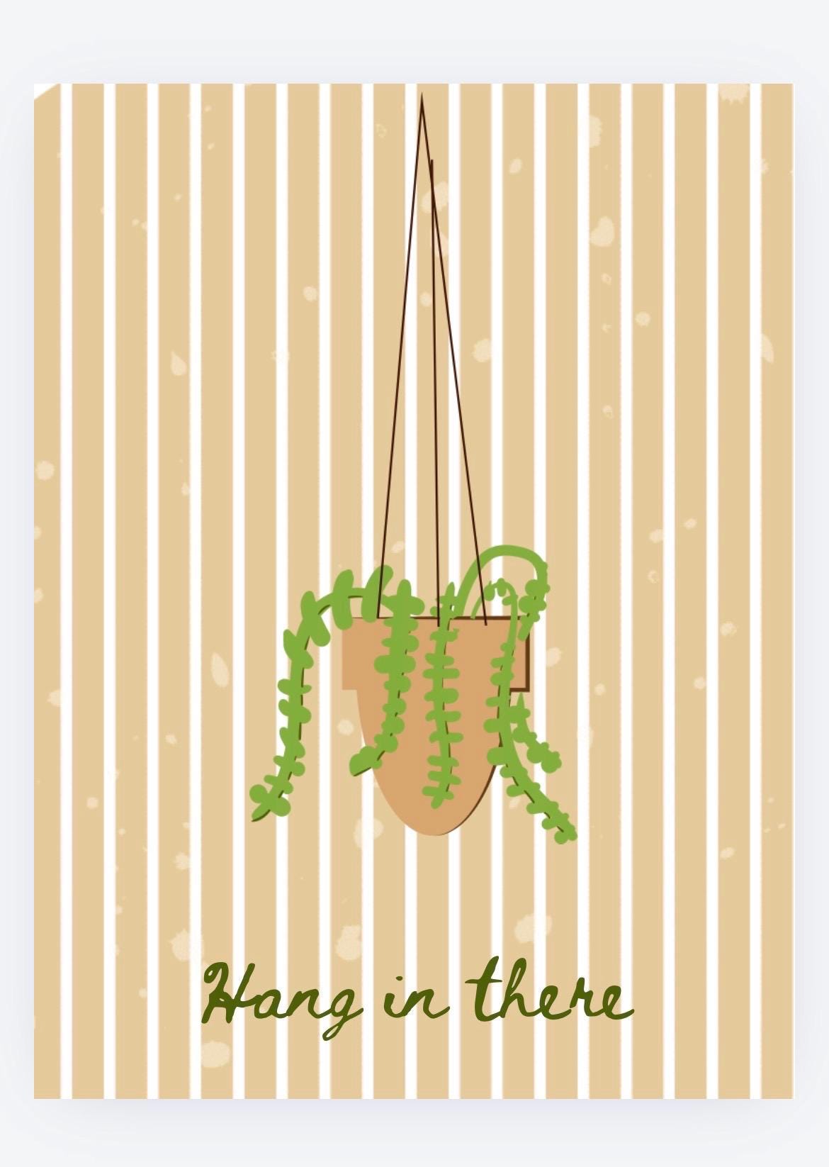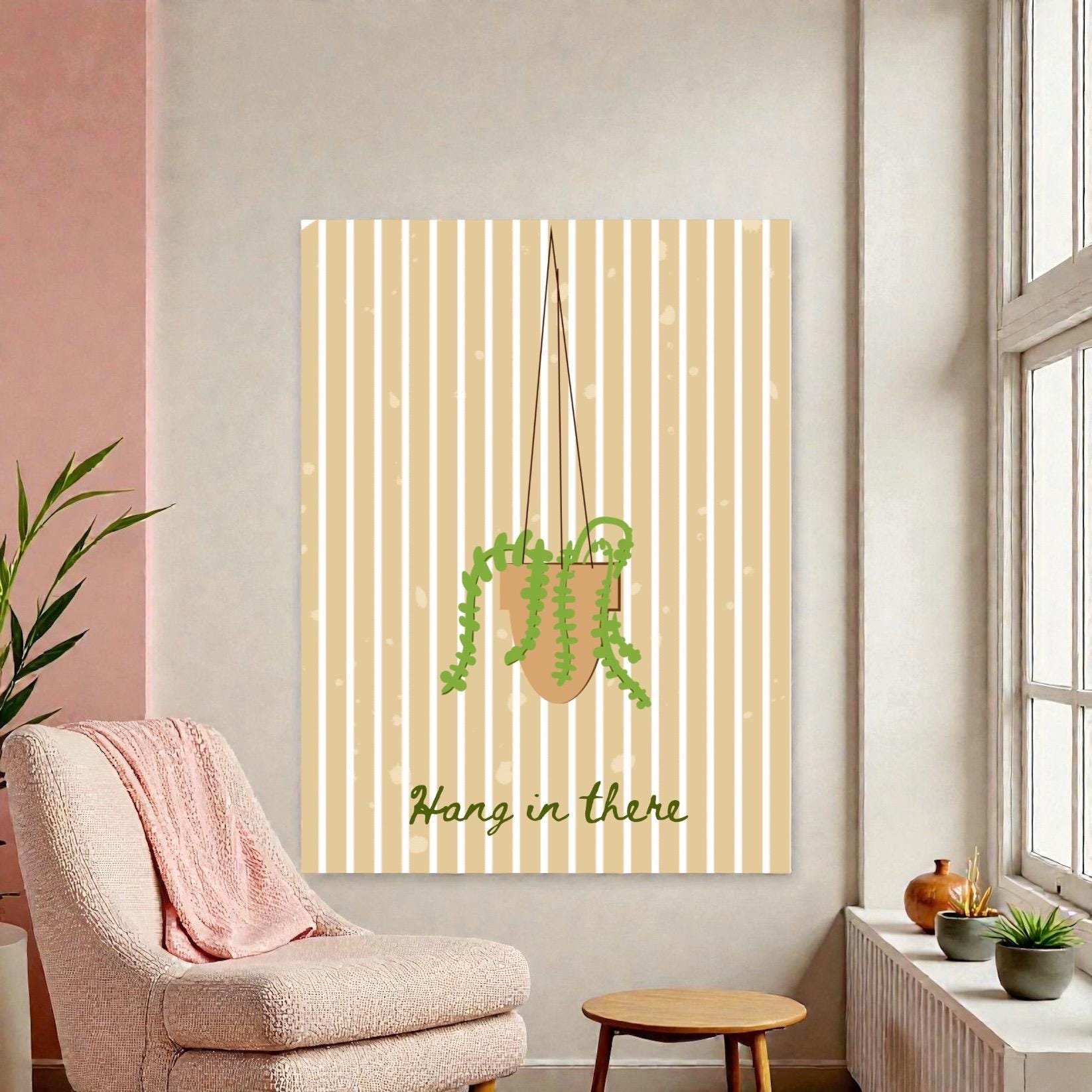 This funky boho wall art features a vibrant plant design and the uplifting phrase *“Hang in There.”* With its eye-catching colors and playful energy, this piece is designed to bring joy, encouragement, and personality to any space.
