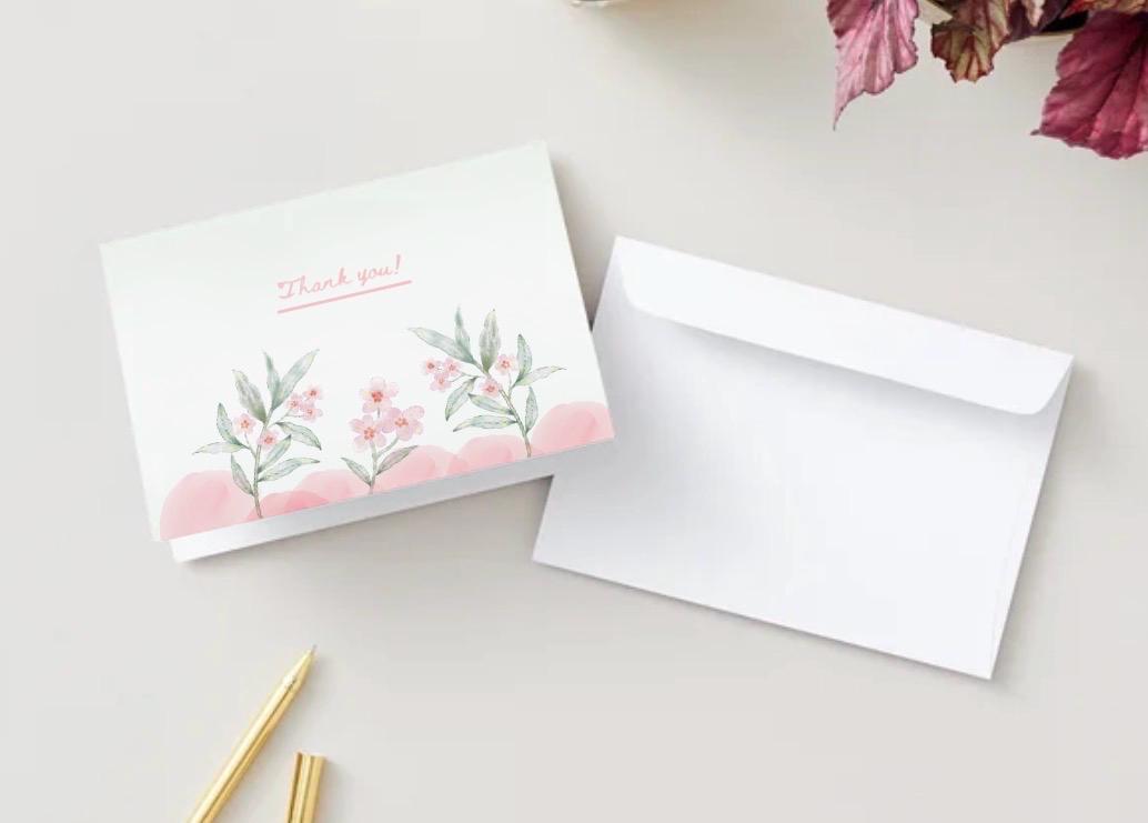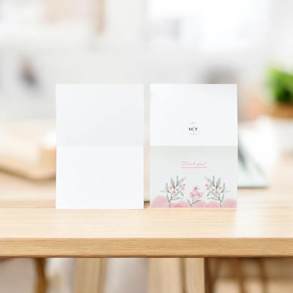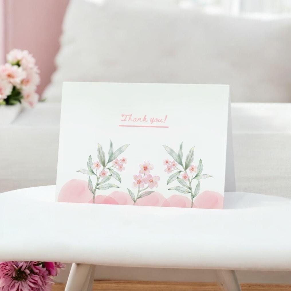 A simple and timeless thank you card featuring soft, minimal floral artwork. Designed to feel elegant yet understated, it’s blank inside so you can add your own heartfelt message. Printed as a 5x7 folded card on quality cardstock.