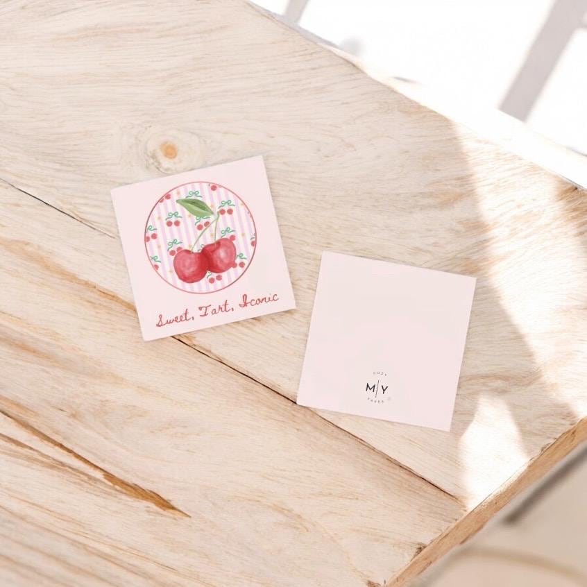 This 5.5" x 5.5" square card features a bold vintage-inspired cherry illustration paired with the playful phrase “sweet, tart, iconic.” With its retro charm and punchy personality, it’s the perfect card for the friend who’s equal parts sass and sweetness.