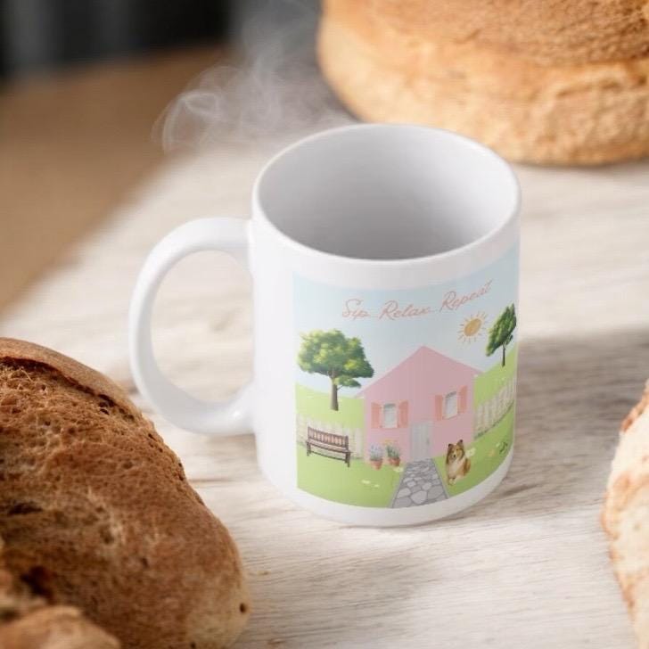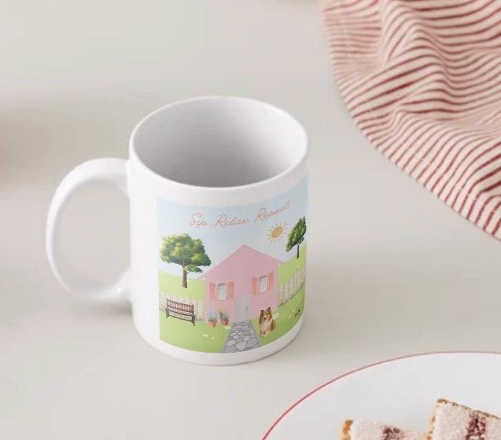 This cozy mug featuring “Sip, Relax & Repeat” is a gentle reminder to slow down and enjoy the little rituals of the day. Perfect for morning coffee, afternoon tea, or a peaceful evening drink.