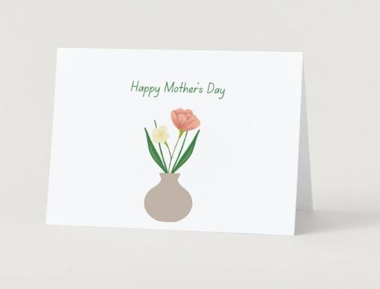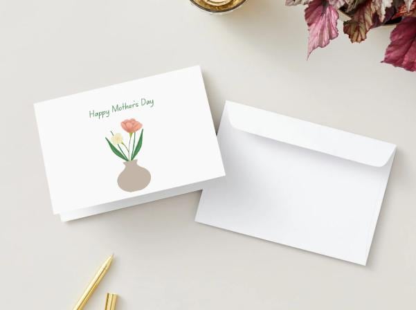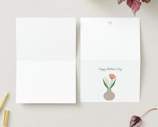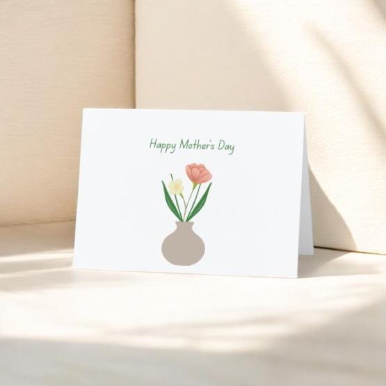 A sweet, minimalist way to celebrate Mom. This folded 5" x 7" card features a delicate flower in a vase, a simple, modern illustration that feels heartfelt without being overdone.