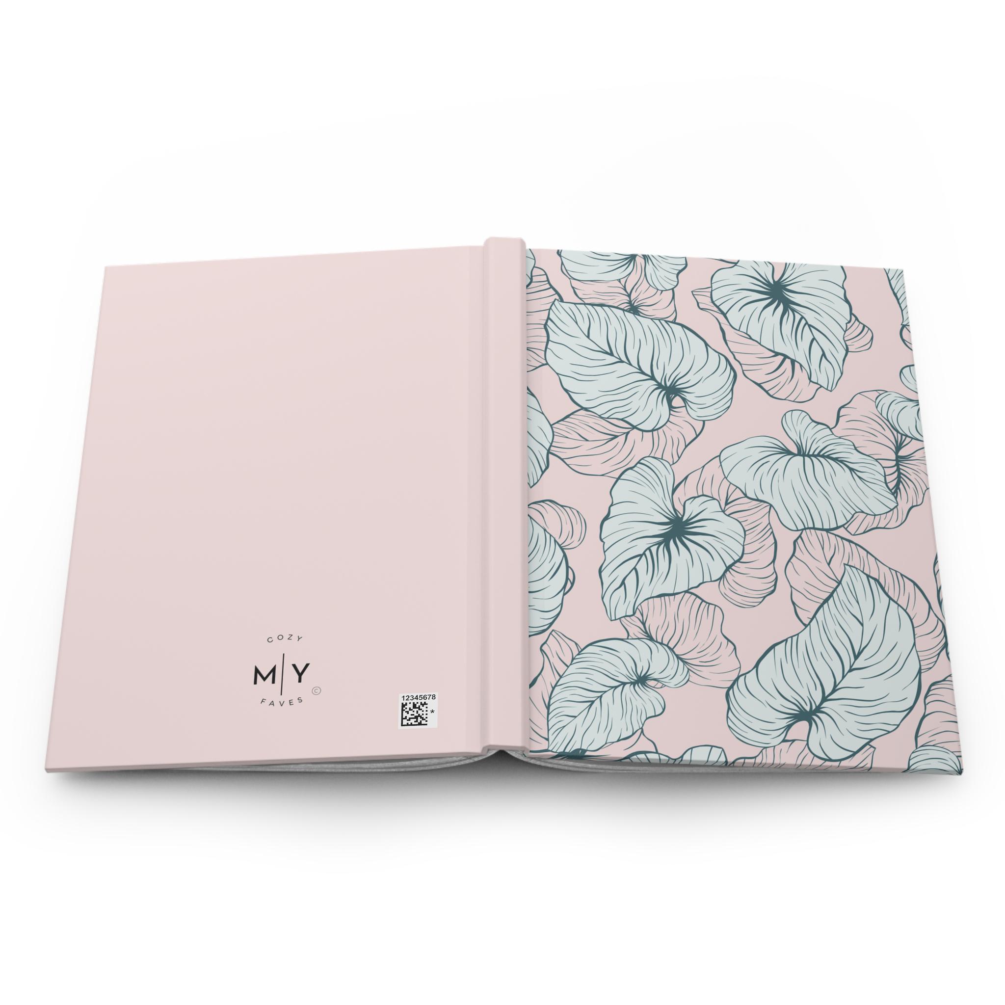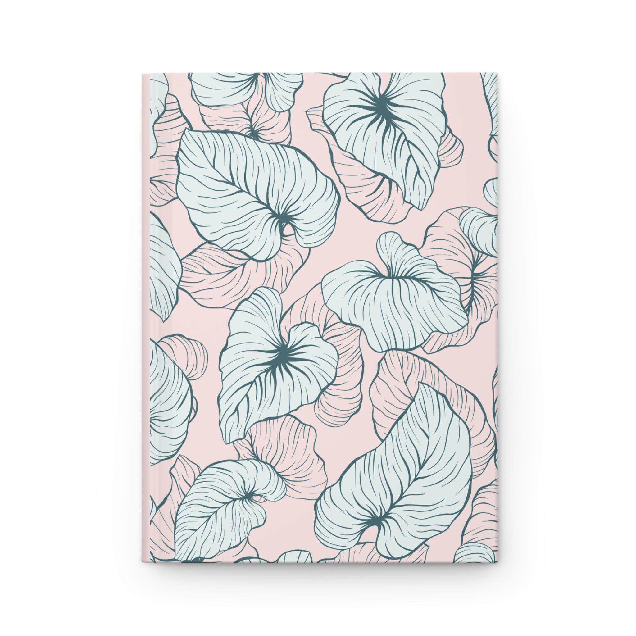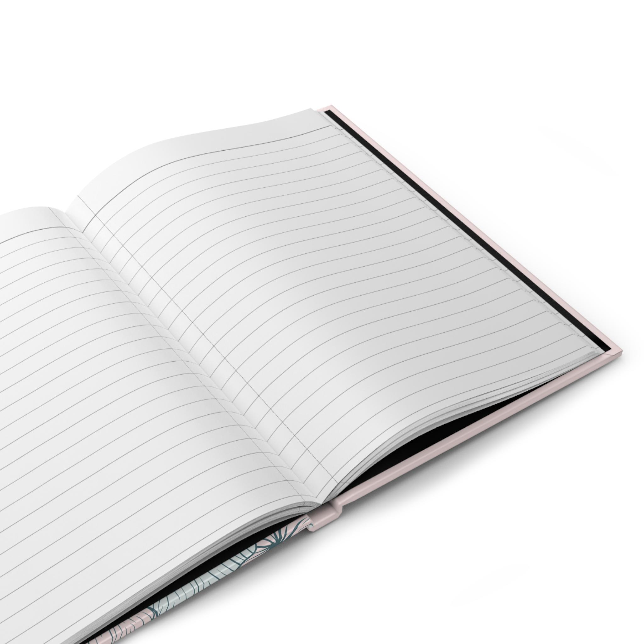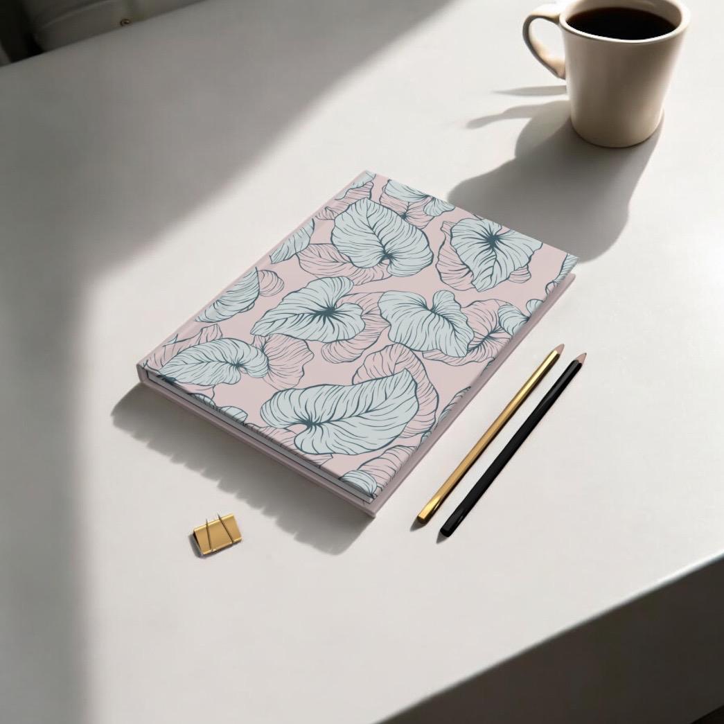 A soft, everyday hardcover journal wrapped in a matte-finish cover that reads like a quiet invitation to slow down. The pale blush background and airy, hand-drawn botanical leaves give it a gentle, feminine mood—perfect for filling with lists, sketches, plans, or private notes. The sewn casewrap binding lets the book open flat and wear well, while 150 lined pages and perforations make it easy to write, tear out, or share a page when needed. Colors stay bright and consistent across the full-wrap print, and the smooth matte lamination keeps the cover feeling refined and durable.